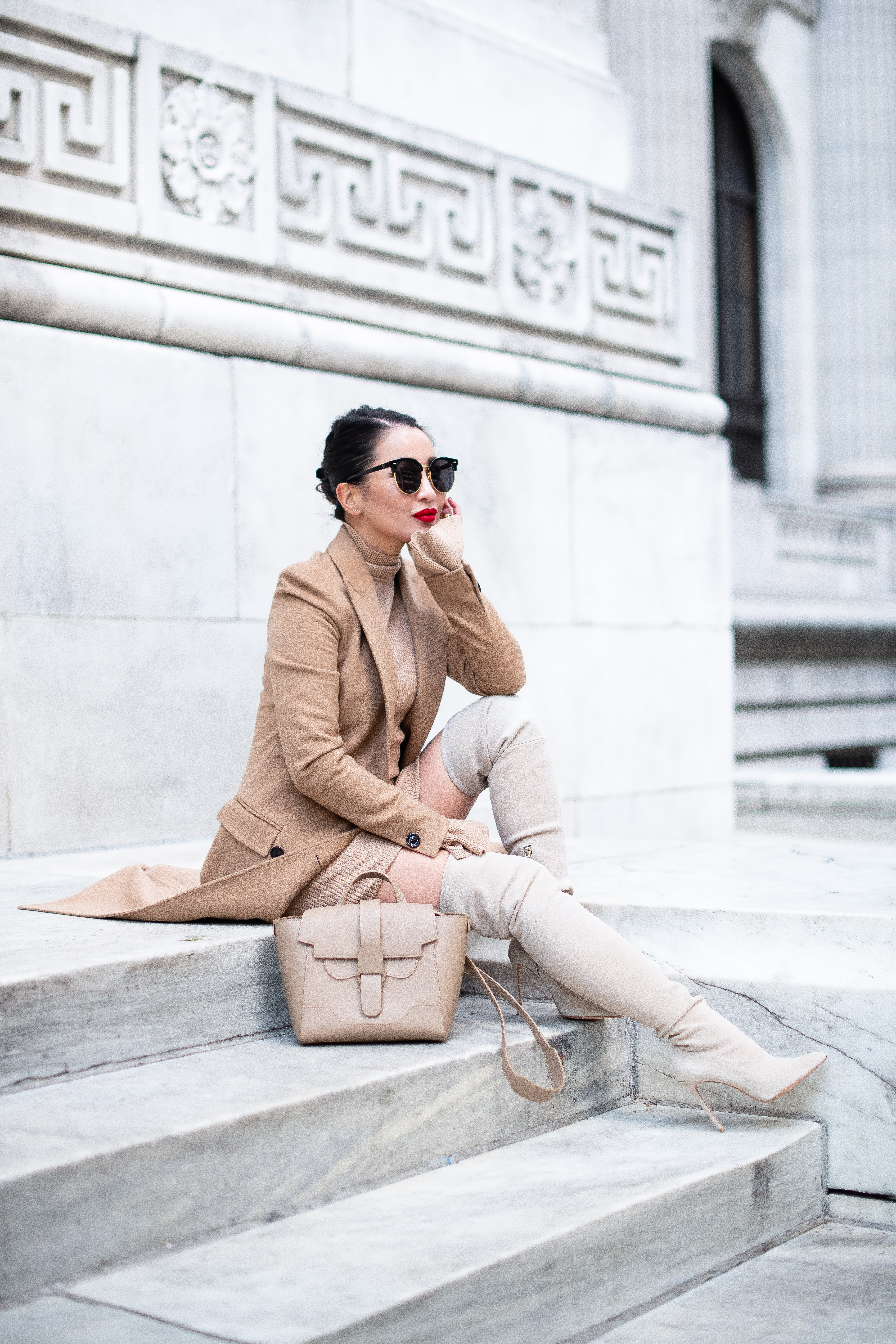 Highlighting the best of winter, I’m pulling out all of my favorites! Red and beige are such classic colors, and especially for winter, they create so many timeless looks. One of my best investments this fall/winter… this maxi beige coat! It fits like a glove (petite-friendly!), super tailored, and the long length is very flattering. Another favorite piece is this beige bag (current season color is Dolce Butterscotch) and red bag (Chili Red color). They both are such beautiful colors that work well with fall/winter and spring/summer outfits.